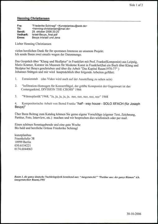 Emne: Beuys inlsrael und Jena