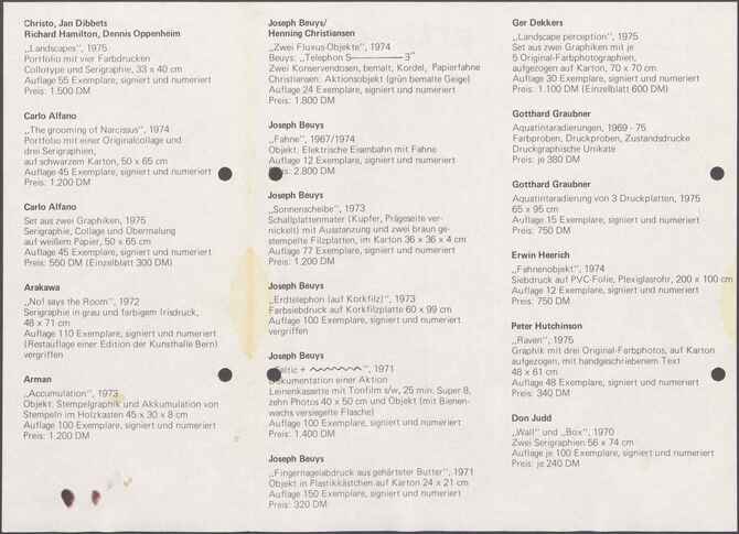 Soto, Spoerri, Tapies, Thomkins, Twombly, Vasarely, Walther, Warhol, Wesselmann, Wittenborn