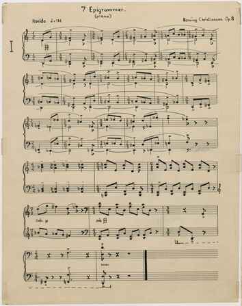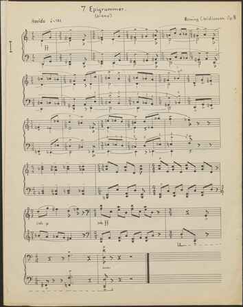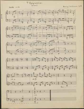 Back Henning Christiansen's archive Op. 8, 7 Epigrammer for klaver Author/Key figure Henning Christiansen Facts PDF Document type Score Date 1959 Omtalte værker Op. 8, 7 Epigrammer for klaver Original