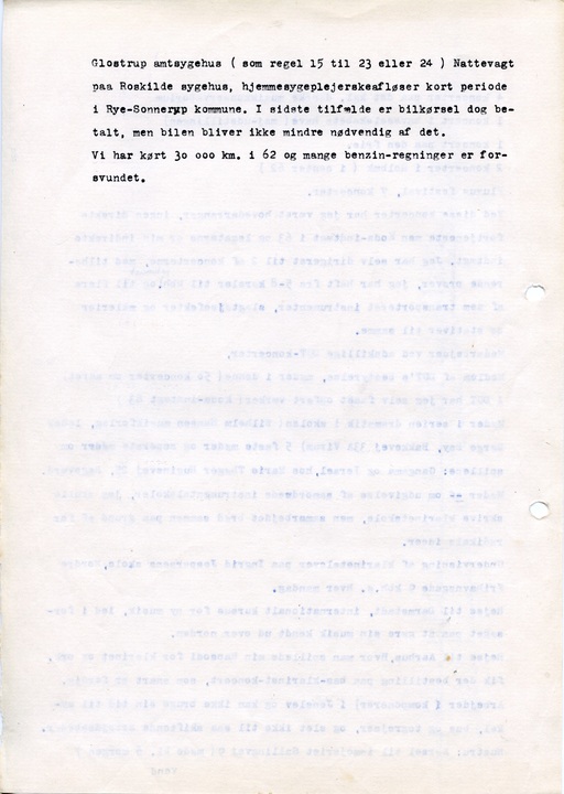 Glostrup amtsygehus (som regel 15 til 23 eller 24) Nattevagt paa Roskilde sygehus, hjemmesygeplejerskeafløser kort periode i Rye-Sonnerup kommune. I sidste tilfælde er bilkørsel dog betalt, men bilen bliver ikke mindre nødvendig af det.