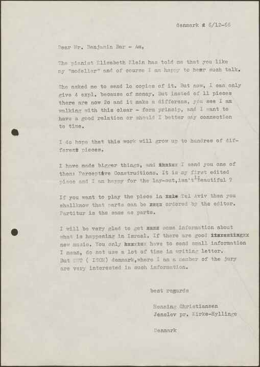 I will be very glad to get some information about what is happening in Israel. If there are good new music. You only have to send small Information I mean, do not use a lot of time in writing letter.