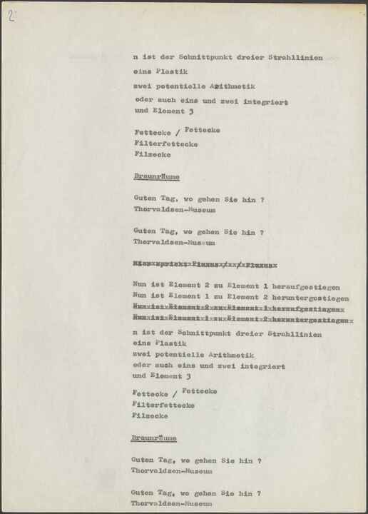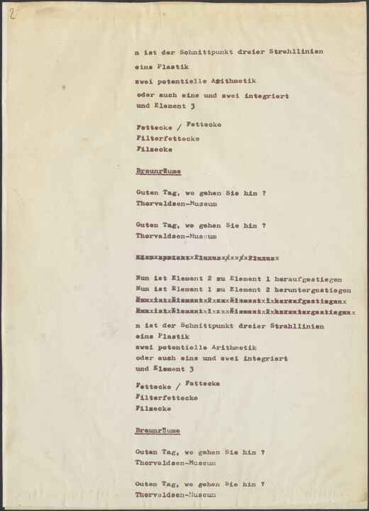 blev opført 15. december 1966 i galleri Schmela, Düsseldorf-Stadtmitte, som sidste Liebeshandlung, inden det gamle galleri lukkede, for at genåbne i løbet af et års tid i en ny modulpræget skikkelse.