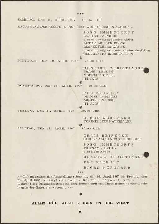 Drei neue Aktionen - - in der Galerie Aachen April 1967