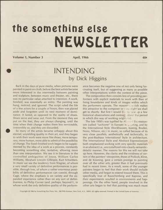 Something Else Newsletter, Volume 1, Number 3: April 1966