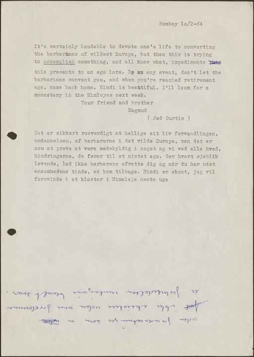 Det er sikkert rosværdigt at hellige sit liv forvandlingen, omdannelsen, af barbarerne I det vilde Europa, men det er som at prøve at være medskyldig I noget og vi ved alle hvad, hindringerne, de fører til et mistet ego. Gør hvert øjeblik levende, lad ikke barbarerne afrette dig og når du har nået ensomhedens tinde, så kom tilbage. Hindi er skønt, jeg vil forsvinde i et kloster i Himalaja næste uge