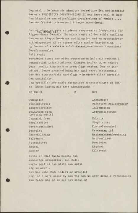 Jeg skal i de kommende minutter beskæftige Dem med kompositionen: PERCEPTIVE CONSTRUCTIONS II men først skal de høre den klapsalve som efterfulgte uropførelsen af værket .... den er faktisk interessant i denne sammenhæng.