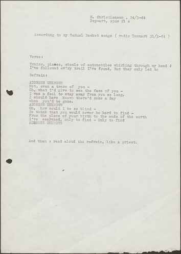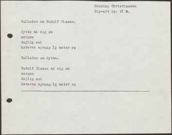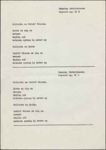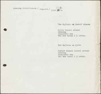 Back Henning Christiansen's archive Op. 21, "Pop-Art" ballader Author/Key figure Henning Christiansen Facts PDF Document type Score Date 1964 Omtalte værker Op. 21, "Pop-Art" ballader Original
