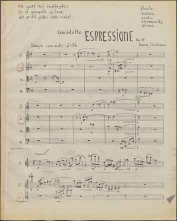 Back Henning Christiansen's archive Op. 10, Quintetto espressione Author/Key figure Henning Christiansen Facts PDF Document type Score Date 1962-02-21 Omtalte værker Op. 10, Quintetto espressione Original