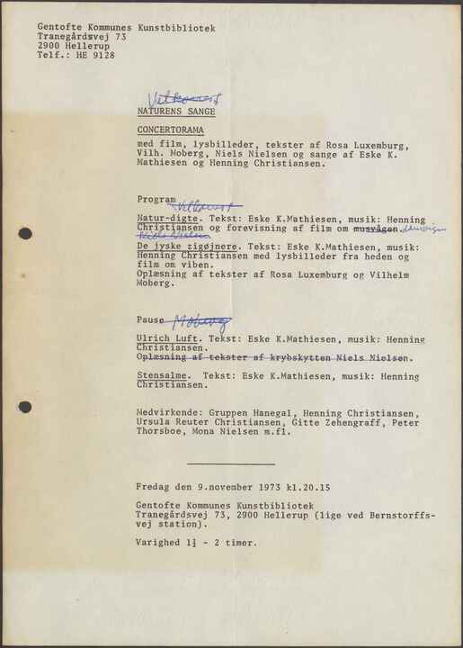 _Natur-digte. _Tekst: Eske K. Mathiesen, musik: Henning Christiansen og forevisning af film om musvågen. Lomvigen