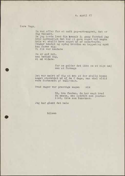 Nå, hva fanden, du har sagt hvad du mente, men optrådt som journalist, ikke som kunstner.
