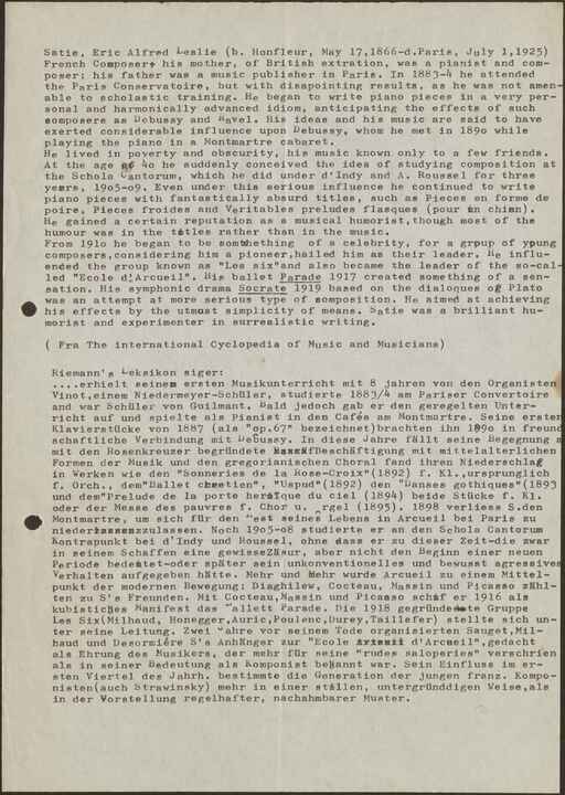 Tekster om Erik Satie