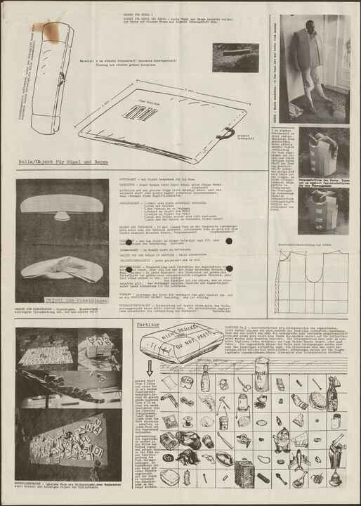 OBJEKT FÜR KUNST (für 1970) – benutzen um in dem Jahre verschiedene Arten von Kunst zu erfinden. /eine besondere Definition von Kunst/ die Anstrengung ist durchaus nicht überflüssig – Proben wurden gemacht (Liste bei Franz Erhard Walther)