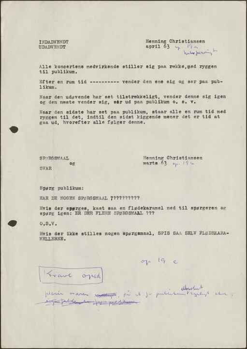 Partitur op. 19 "Audience Pieces" (indadvendt-udadvendt, spørgsmål og svar, kravl opad), annoteret (2)