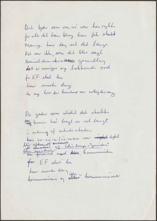 Kladde til sangen "Kommunisme og igen - KOMMUNISME"