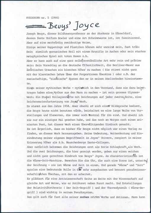 PDFTysk oversættelse af Hans-Jørgen Nielsens artikel "Beuys' Joyce" i Hvedekorn, no. 5, 1966.