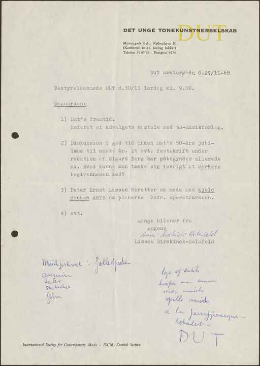 Dagsorden DUT-bestyrelsesmøde d. 30. november 1968