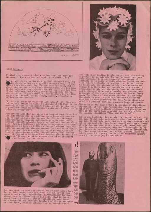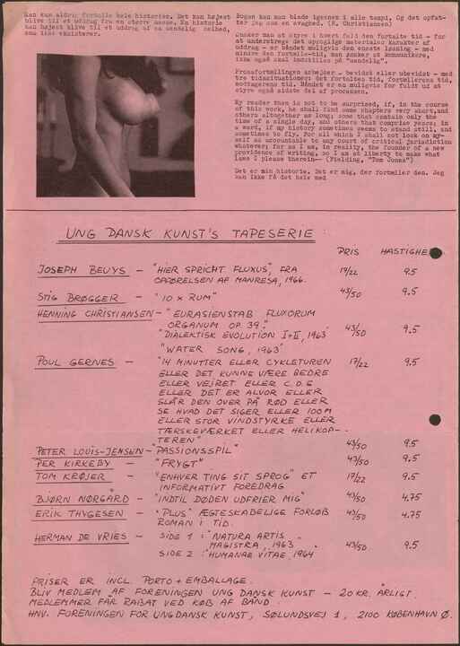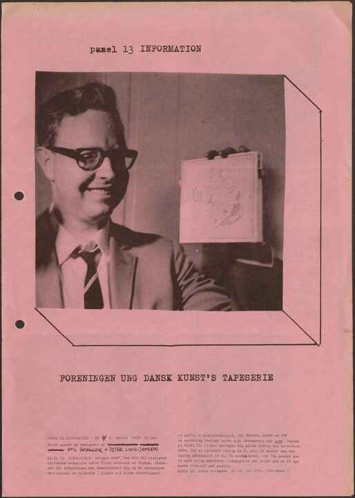 Foreningen Ung Dansk Kunsts tapeserie/Tom Krøjer, "Information og repræsentation" (1968)/Bjørn Nørgaard, "Indtil døden udfrier mig" (1968)/Henning Christiansen, "Fluxus-manifest" (1966)/Stig Brøgger, "10 x rum" (1968)/Erik Thygesen, "En roman på bånd" (1968)