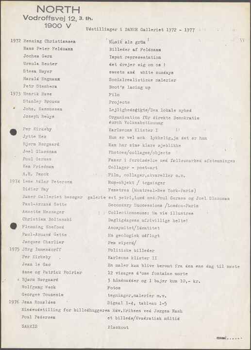 PS. Som støtte for hukommelsen vedlægger vi en listetover Daner Galleriets udstillinger og publikationer.